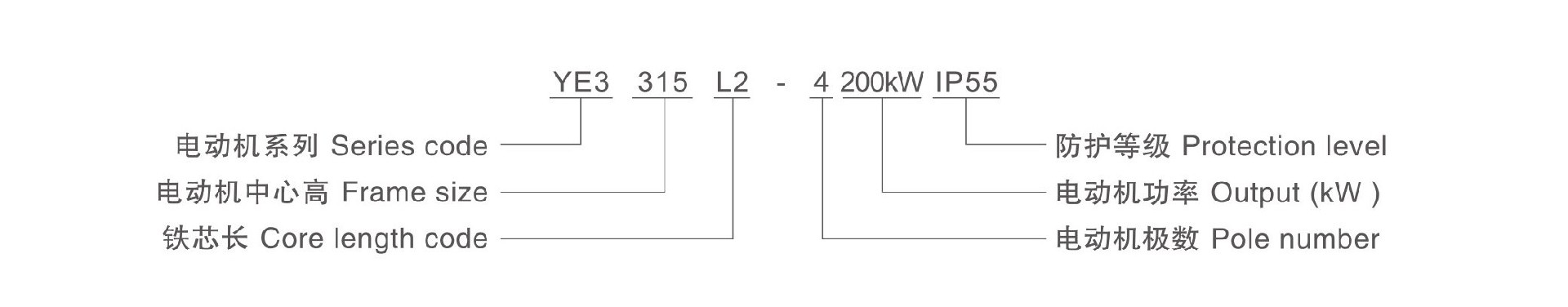 YE3系列电动机中心高H80-355,功率从0.75-375kW,极数为2、4、6极。